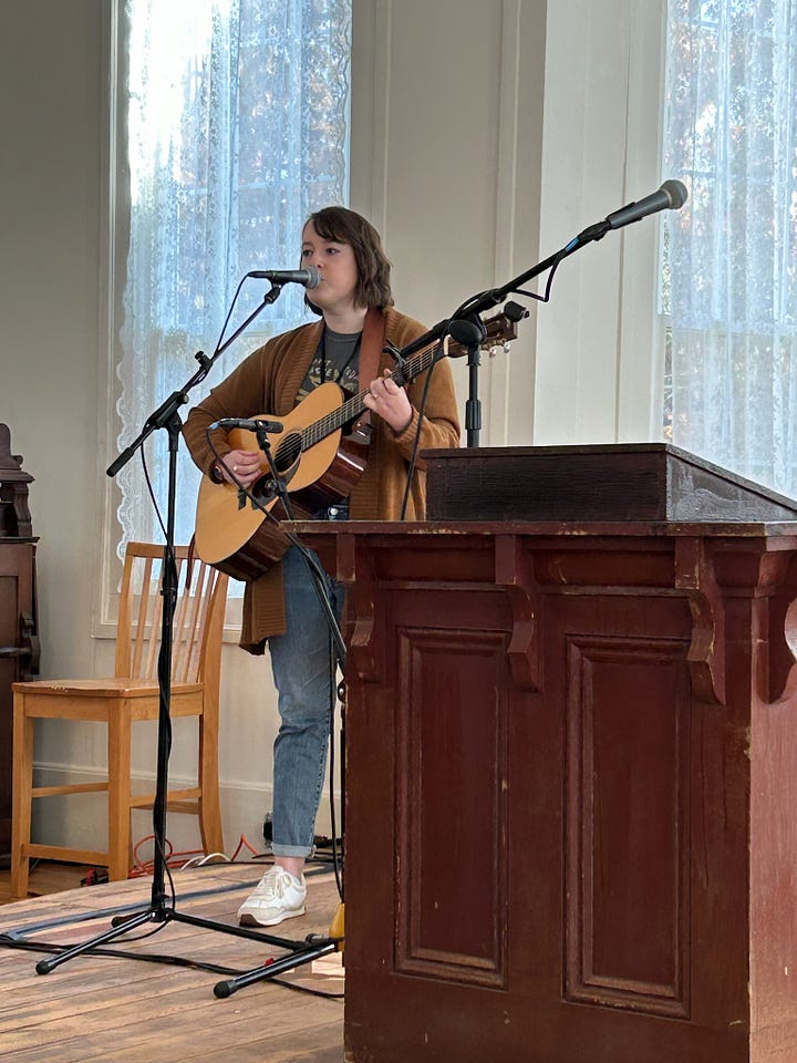 After a delicious dinner and time of celebration, the night ended with a concert from Taylor Leonhardt accompanied by Stefan Cashwell. At this point of the day, my necessary extroversion was waning, but my heart was full. There’s a remarkable sense of relief and joy when you discover that there really are people with shared passions just around the corner.